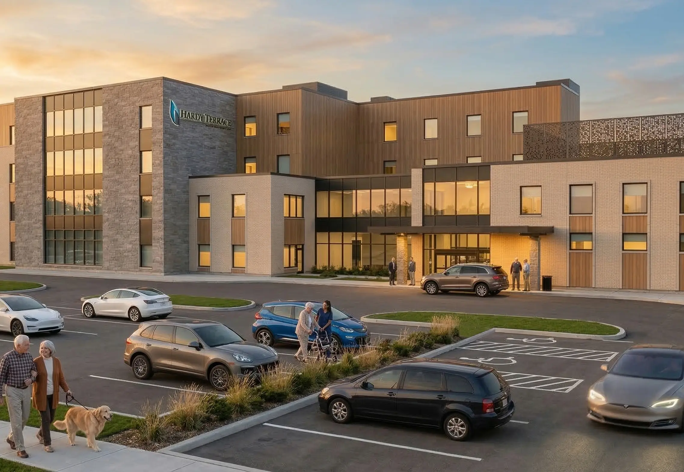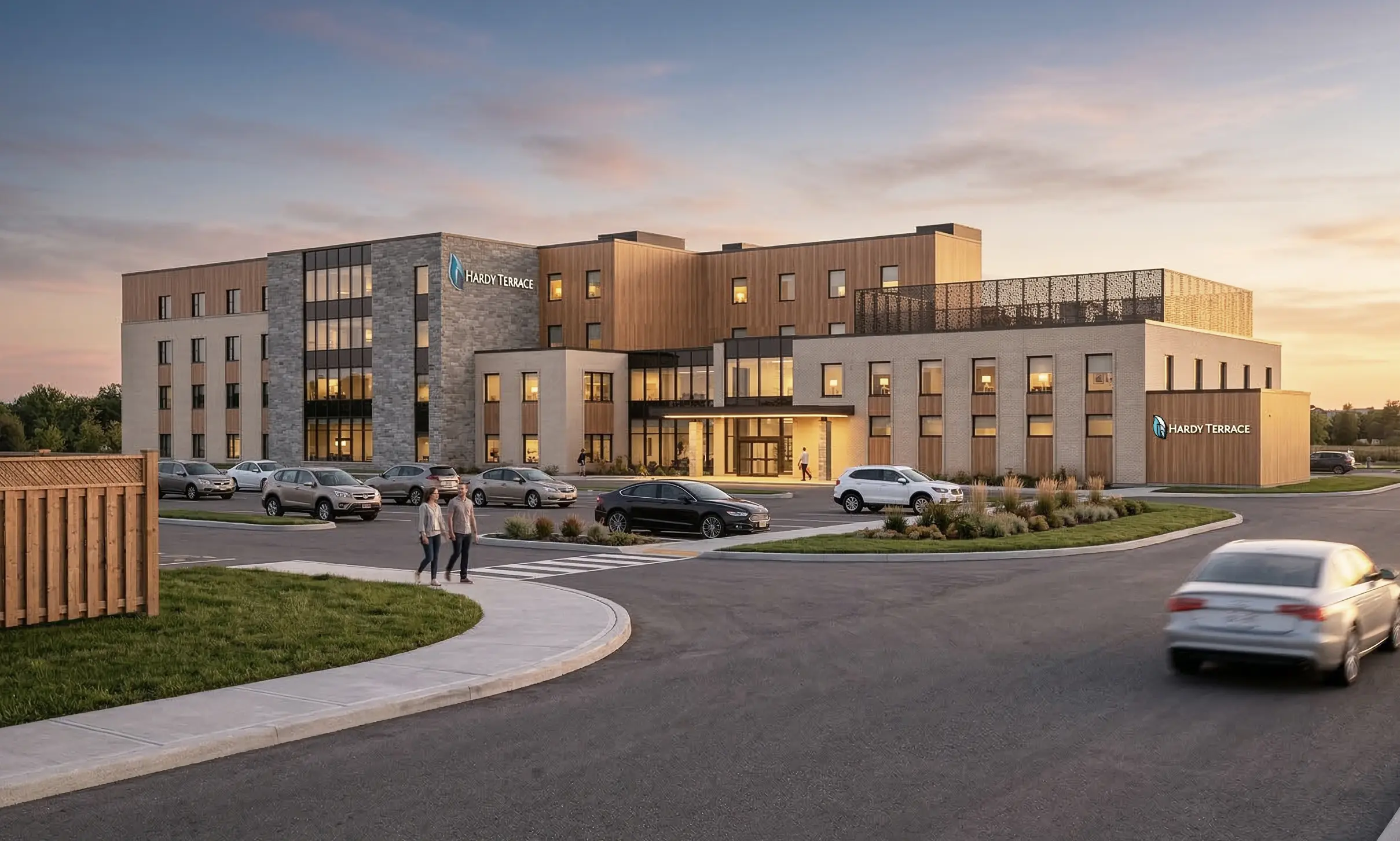 Hardy Terrace Long-Term Care is a 4 storey, 128 bed addition onto an existing,1 storey Long-Term Care Facility located in Brant County Ontario.